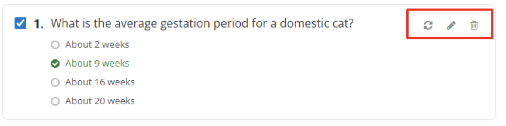Edit Your Questions: After questions are generated, you can also make adjustments directly from the preview list. You'll notice a pencil icon next to each question — clicking it allows you to make quick edits to that question. You can also remove individual questions from the list or regenerate a specific question on its own.