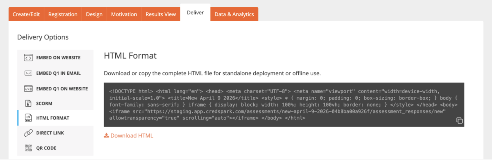 HTML Format allows users to download or copy the complete HTML file for standalone deployment or offline use - ideal for environments that only support HTML files and do not accept other formats.