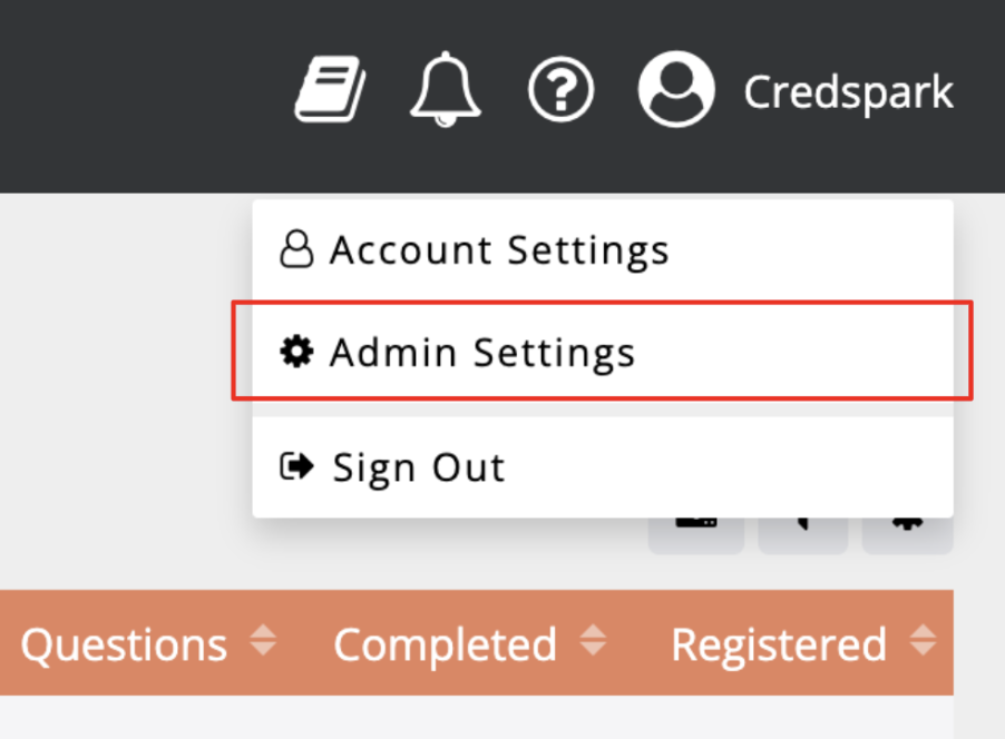 If you are an Admin, log in to CredSpark: http://app.credspark.com. Click on the profile icon in the top right and select “Admin Settings”: