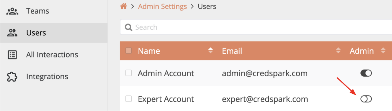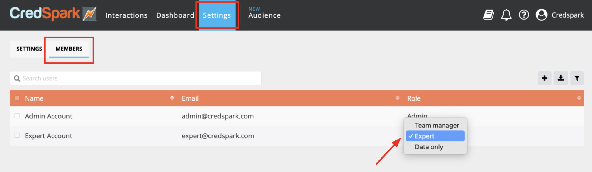 The Expert role is by far the most common role for CredSpark users, because it’s focused on creating content and collecting data. Each Expert has their own credentials to login to the app and can create and publish interactions. Multiple Expert accounts are useful if you have more than one person responsible for content creation or different brands in your organization.