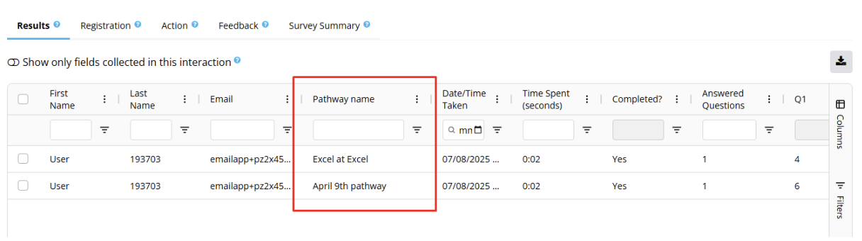 You’ll now see a new column titled “Pathway Name” in your interaction data, showing which Degreed Pathway each response came from.