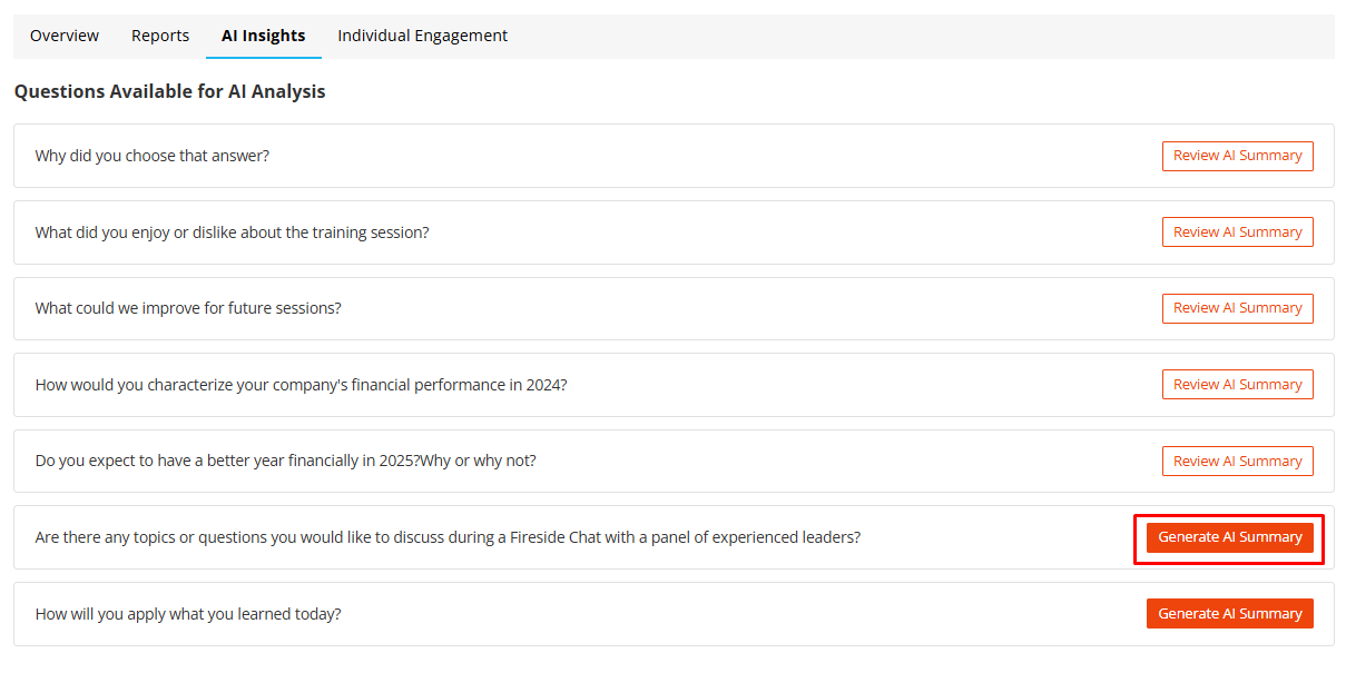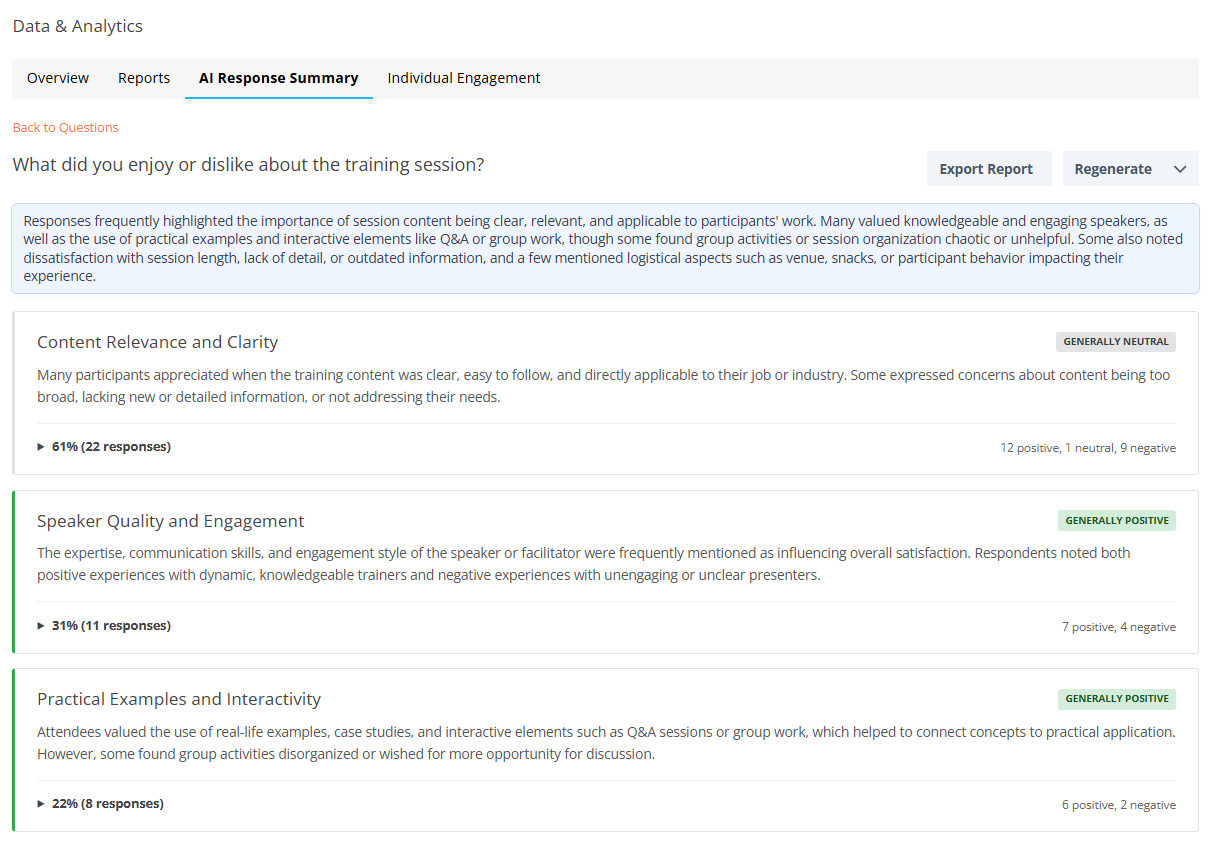 Because of this, we recommend reviewing individual responses alongside the AI summary, especially for high-stakes decisions or questions focused on improvements, feedback, or sentiment.