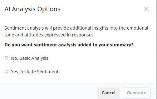 If you are unsure whether sentiment analysis will add value, start by generating the summary without sentiment analysis. You can always regenerate the summary later with sentiment included.
