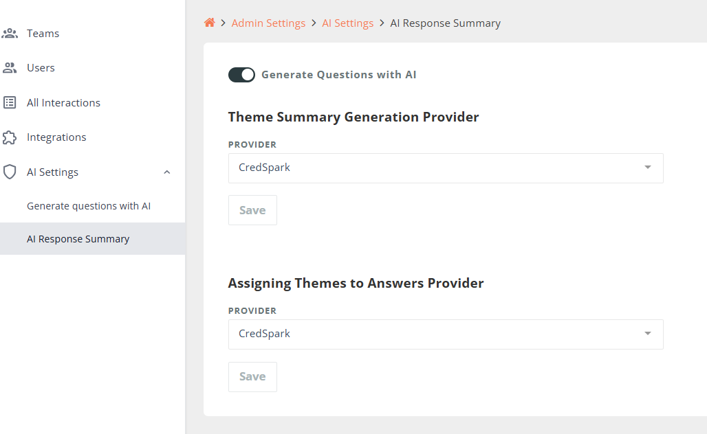 To generate AI Response Summaries, CredSpark uses a third-party AI provider (OpenAI) to process response data.