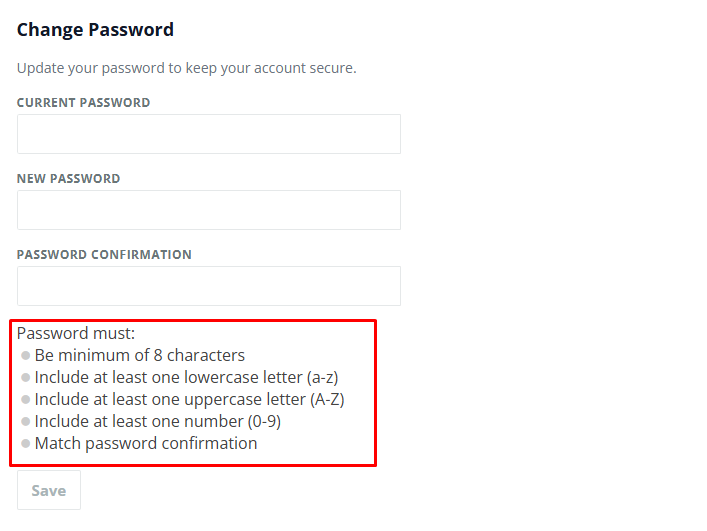- Enter and confirm your new password. Make sure your new password meets the password requirements.